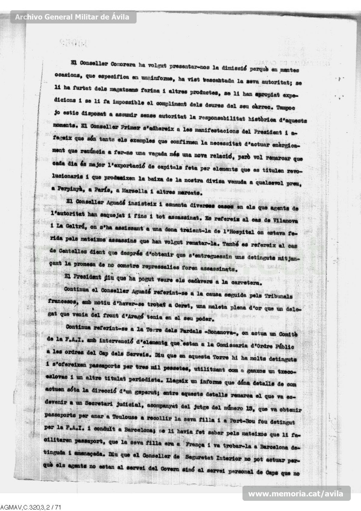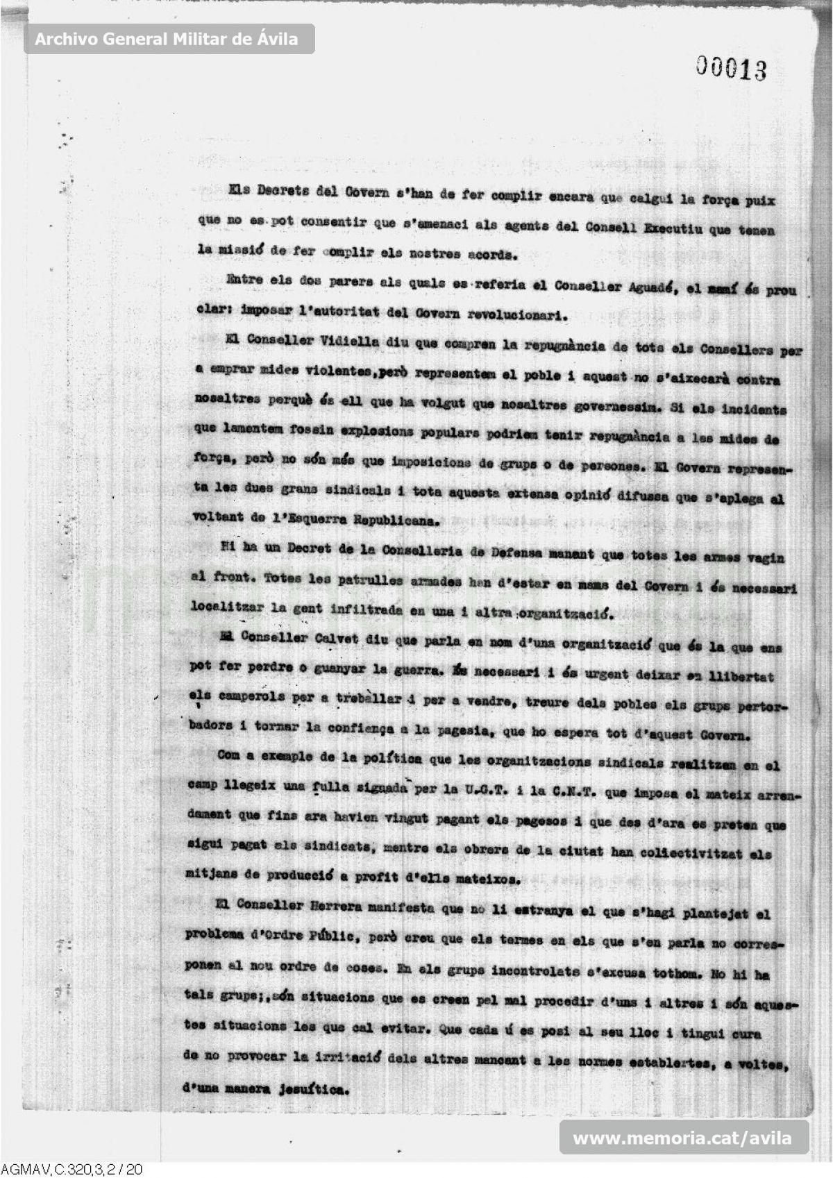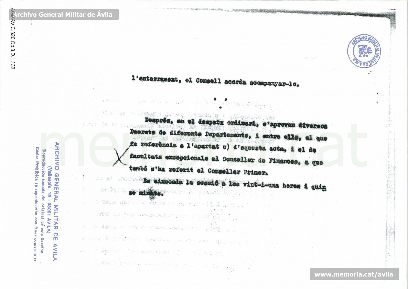 Actes de les sessions del Consell Executiu de la Generalitat de Catalunya , presidides per Lluís Companys (novembre 1936-febrer 1937). (A cada acta hi precedeix un comentari-resum redactat pels franquistes)
