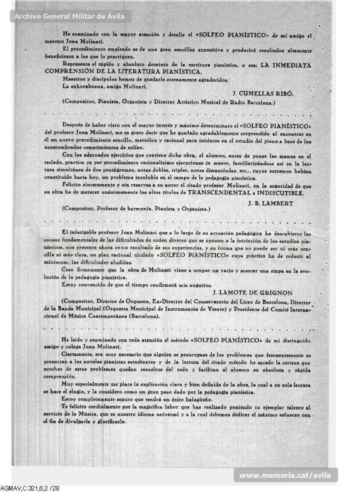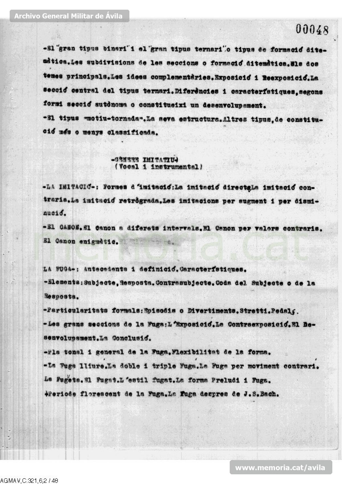 «Conservatori del Liceu. Projecte de programa per a la classe de ‘Formes Musicals’», signat per Joaquim Zamacois (2/3/1937)