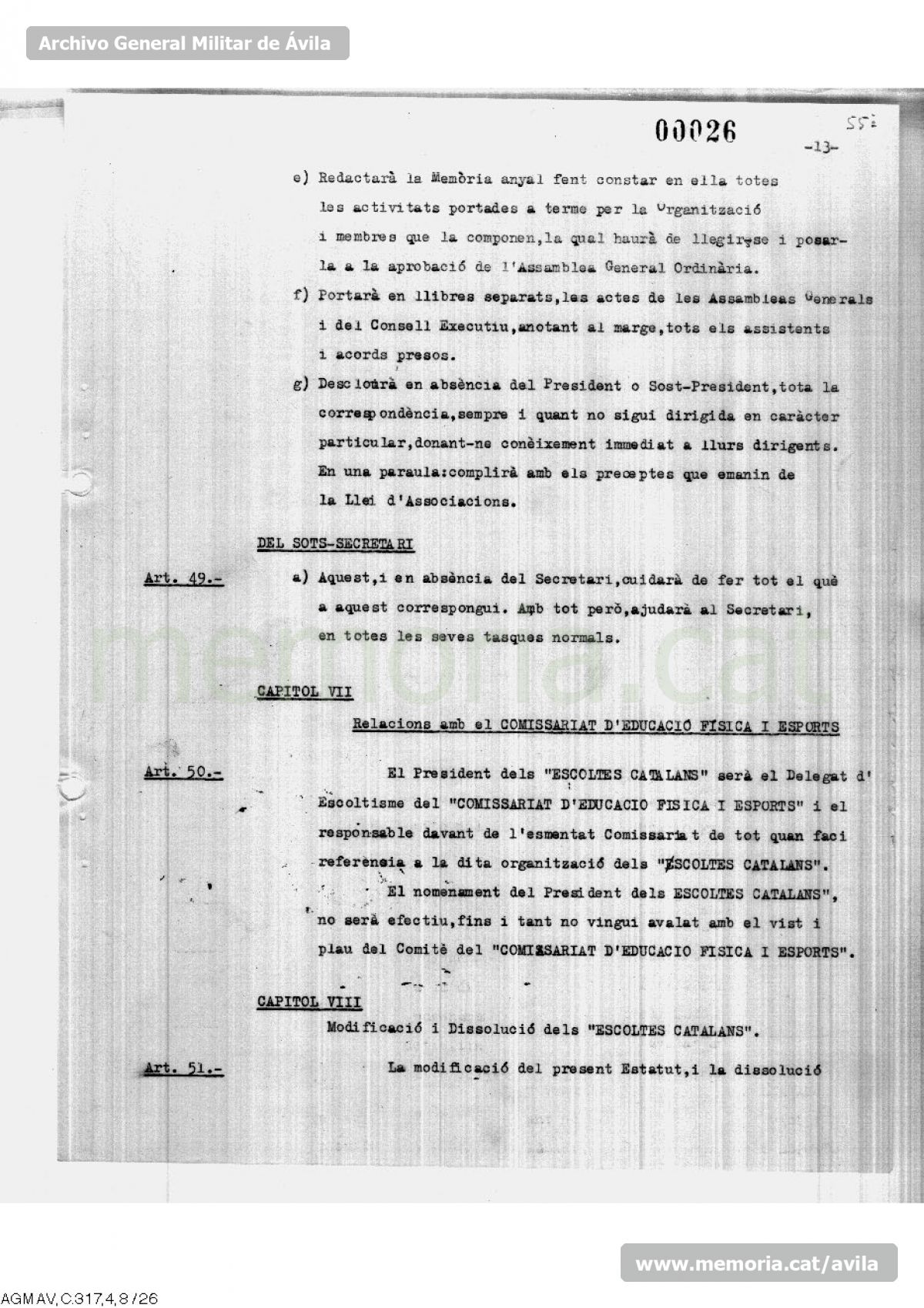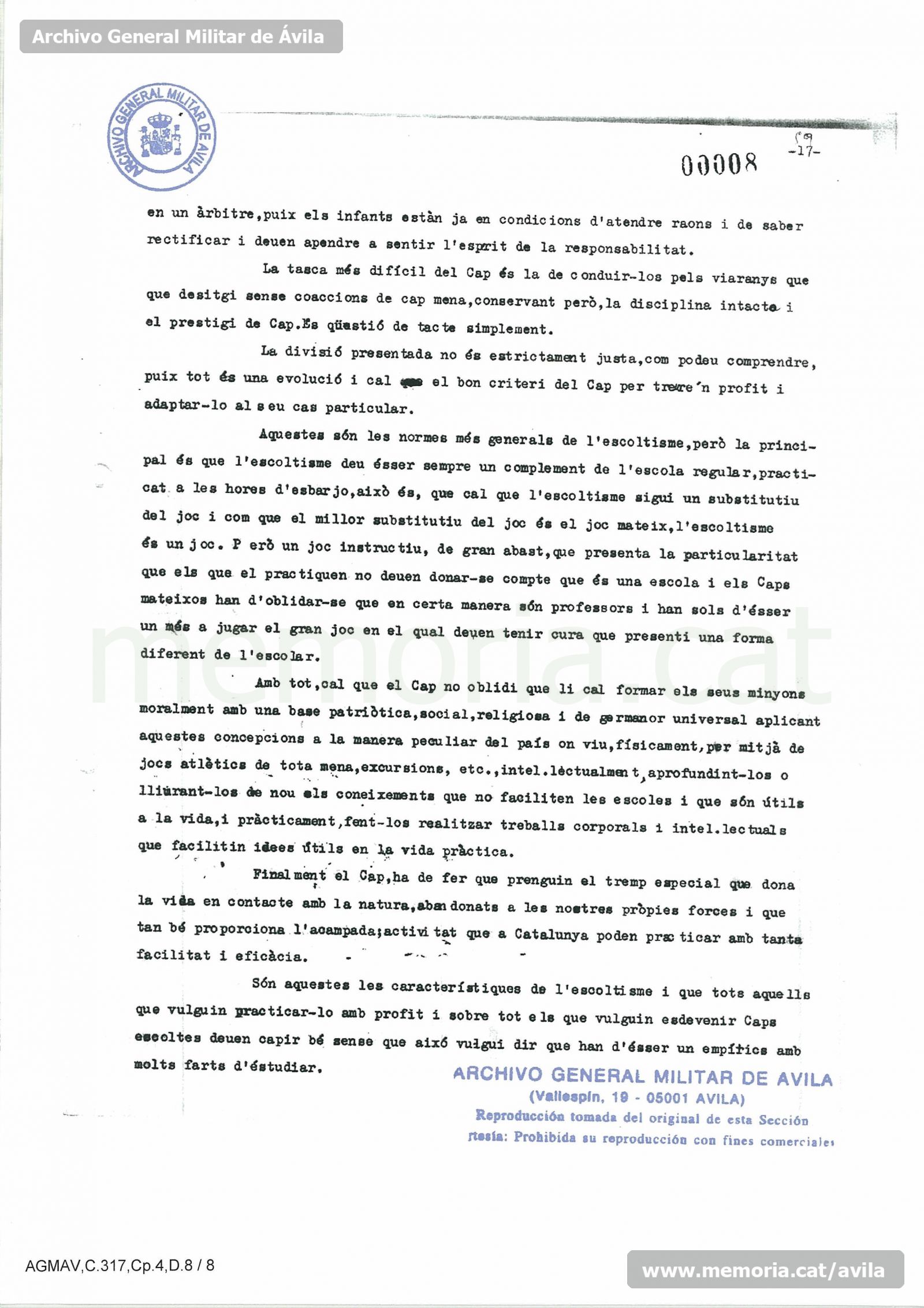 «Idees sobre l’endegament de l’escoltisme a Catalunya. Projecte d’Estatut dels escoltes catalans» (Generalitat de Catalunya. Comissariat d’Educació Física i Esports)