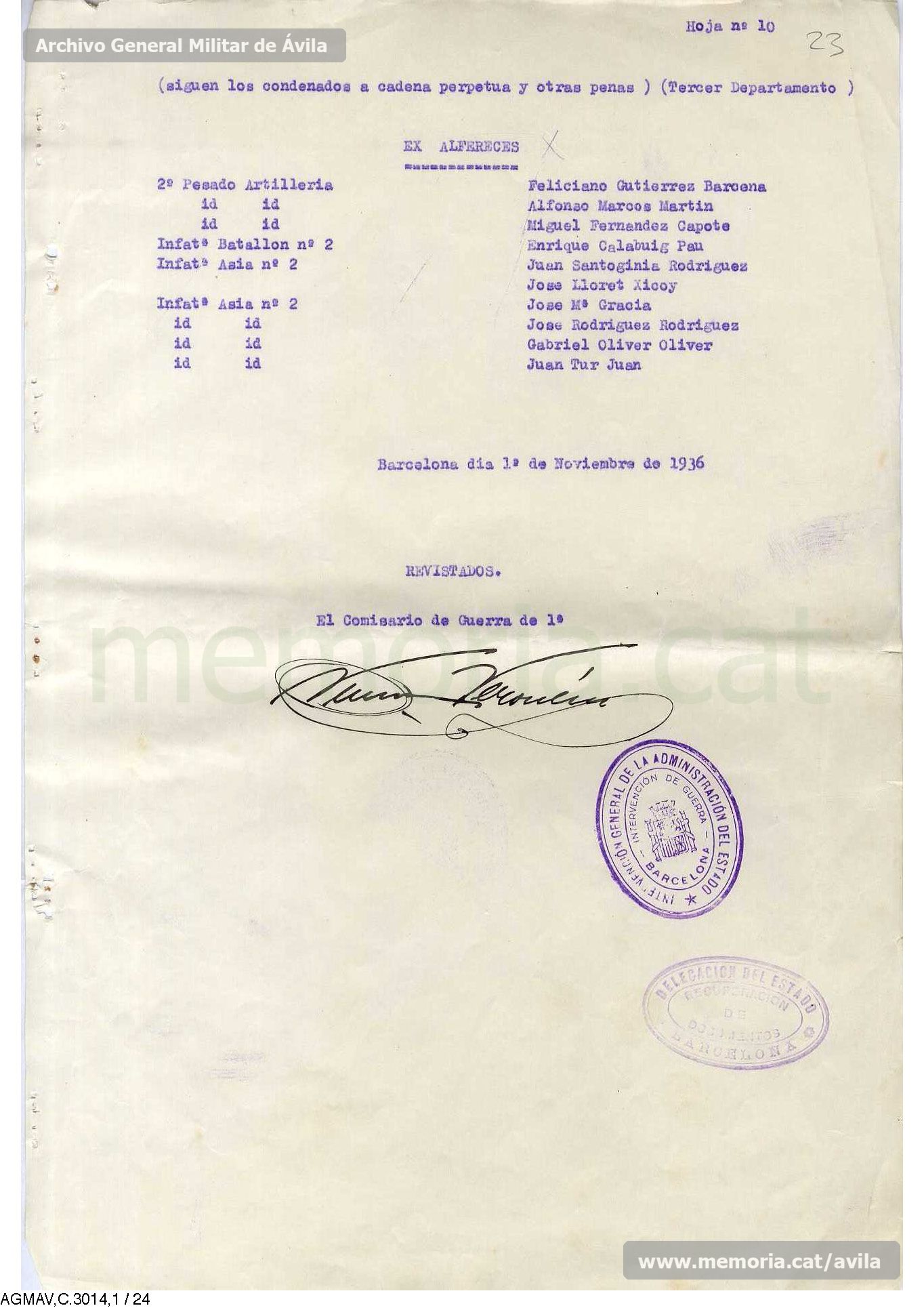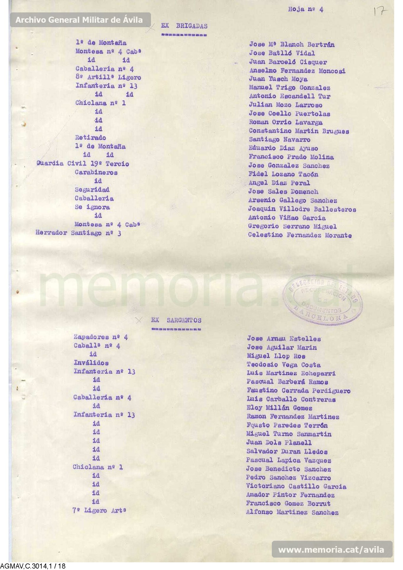 Relació de militars “facciosos” executats –entre els quals, el general Manuel Goded-, empresonats o donats de baixa