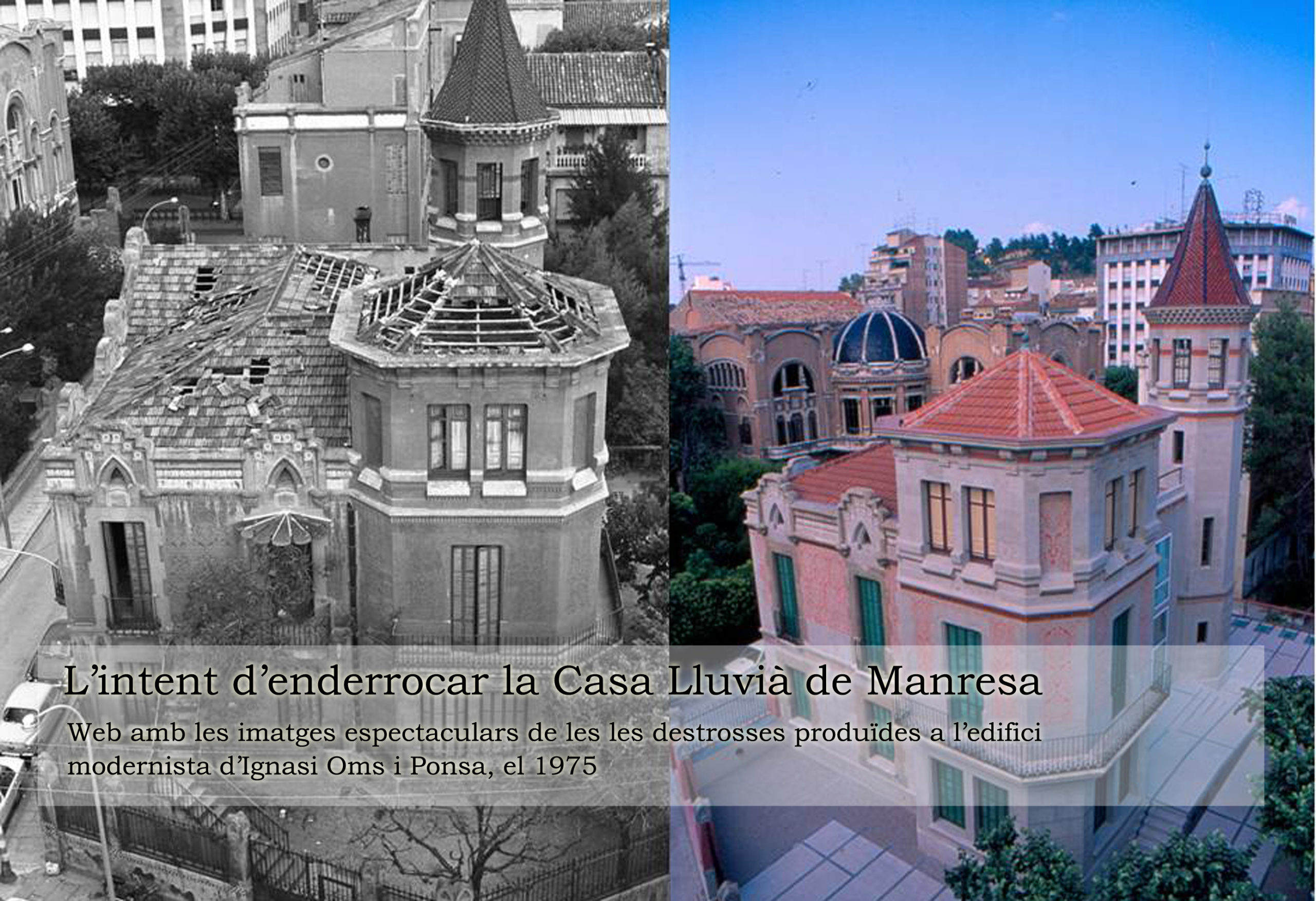 Aquest web recorda el capítol més negre de la història de la Casa Lluvià, el magnífic edifici modernista de Manresa: l’intent premeditat de destrucció de què va ser objecte a finals del franquisme i als primers anys de la transició política com a conseqüència de l’especulació immobiliària. I ho recorda, sobretot, a través de 30 imatges de les destrosses que s’hi van efectuar. Unes imatges que posen de manifest la gravetat d’aquell atemptat arquitectònic. Feliçment, el primer Ajuntament democràtic va poder adquirir l’edifici (l’any 1979) i ara acull la seu a les Comarques Centrals del Col·legi d’Arquitectes de Catalunya i les oficines de la Fira Mediterrània de Manresa des del 2012.
