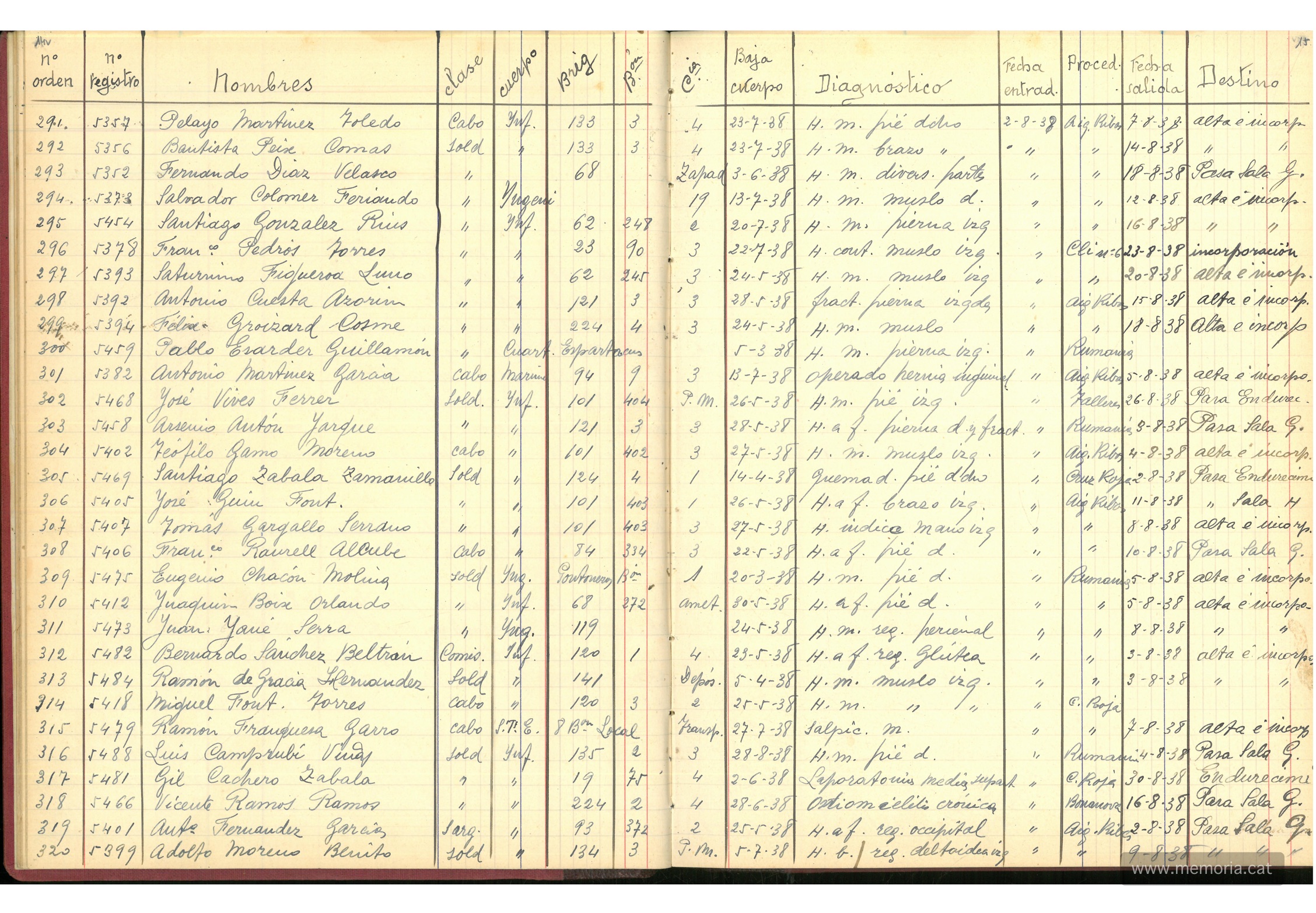 El llistat inèdit dels noms de 913 soldats ingressats a l’Hospital militar de Montserrat l’any 1938