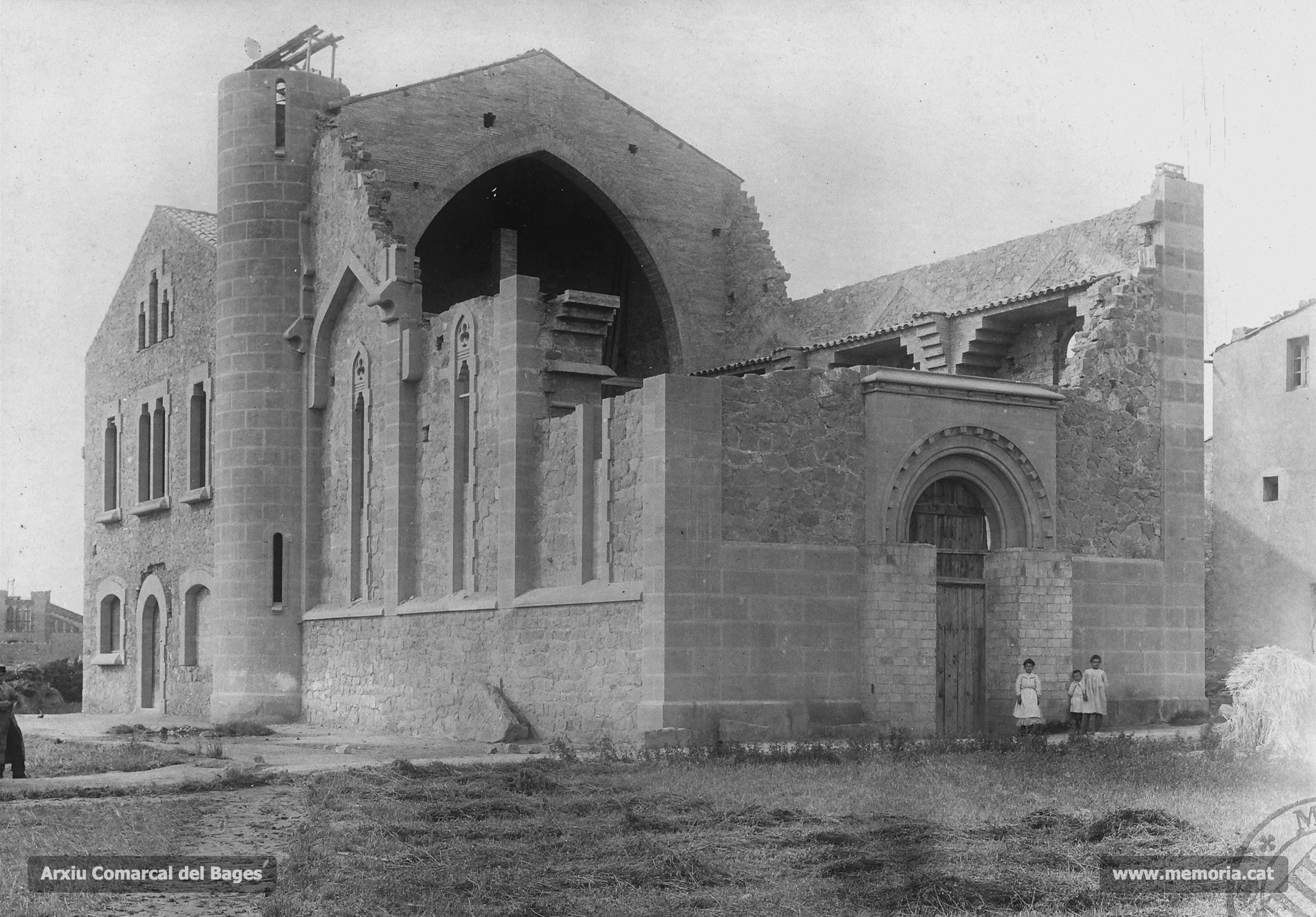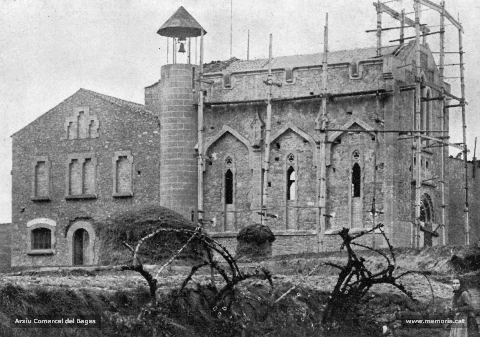 L'església de Sant Josep. Aquest temple, projectat per l'arquitecte Alexandre Soler i March, es va començar a edificar l'any 1903, ben a prop del tossal dels Rajolers o d'en Pau Sabater, seguint la tendència neogòtica que tant s'estilava a l'època. El propietari, Manuel Ignasi Vallès i Pons, va cedir gratuïtament els terrenys per a l'aixecament de l'església, la qual fou sufragada amb els fons obtinguts amb la campanya popular que organitzà mossèn Josep Vidal. L'església va ser beneïda l'any 1913, i quaranta-dos anys més tard esdevingé parròquia.Procedència: Arxiu Francesc Villegas i Martínez.