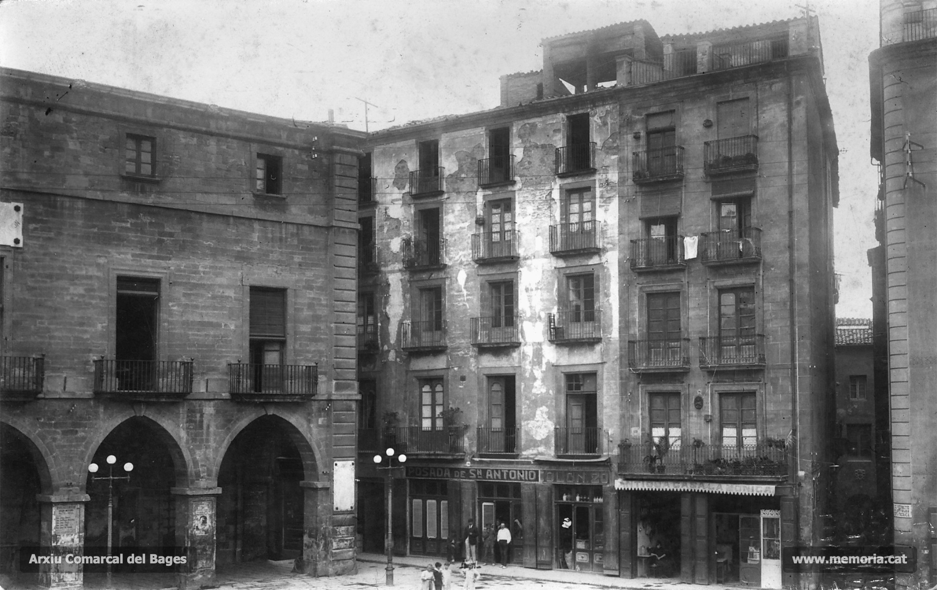 Fotografia aèria de la Plaça Major i de la Casa de la Ciutat l'any 1926. Al fons, l'antic Jutjat, la porta lateral de la Seu, la casa del Paborde i la Rectoria. La plaça ofereix un aspecte molt concorregut: les parades del mercat, gent que manté una actitud expectant davant els treballs d'ornamentació de la façana de l'edifici de l'Ajuntament. Aquest era i és el punt neuràlgic de la ciutat: plaça del mercat de l'horta manresana, punt de manifestacions i protestes i de celebracions polítiques, l'indret preferit per escoltar les bandes de música dels regiments destacats a la caserna del Carme; lloc, en darrer terme, on es rebien amb tots els honors les personalitats que visitaven la ciutat. En aquests moments, hom considerava que fer el mercat en aquesta plaça pública era un signe d'endarreriment, i s'afirmava que «tot el progrés que podem mostrar al nostres visitants en l'ordre de la construcció, comerç i fabricació, i fins, si voleu, de mesures i reformes urbanes en determinats indrets de la ciutat, resta eclipsat quan es topa amb aquest relleu de la venda al carrer, i ens col·loca en una situació d'inferioritat manifesta, total, davant de les ciutats que posseeixen un Mercat tancat a propòsit per aquest servei públic».