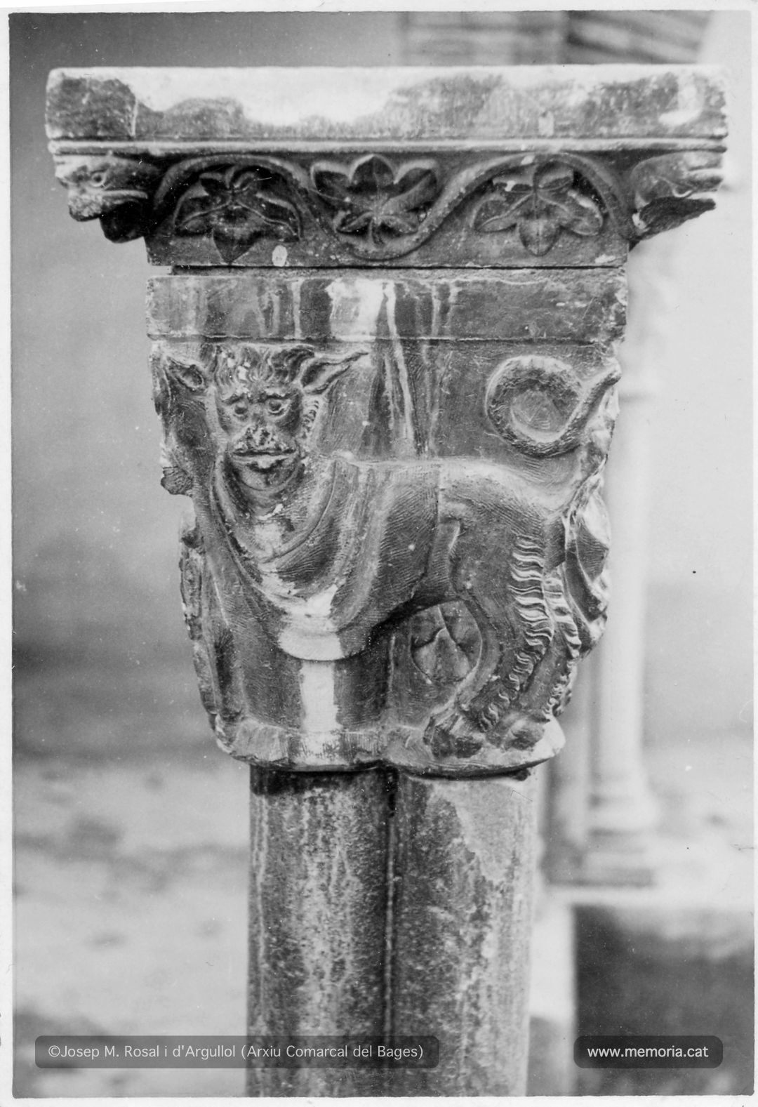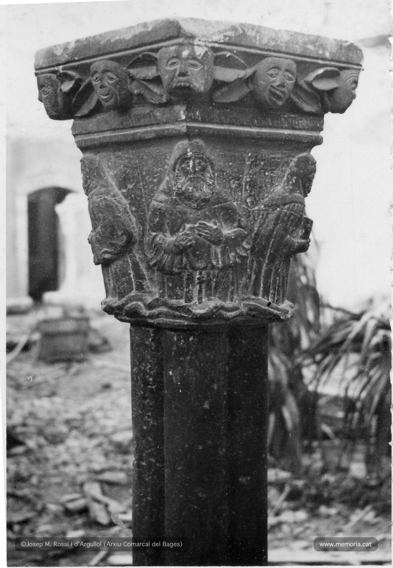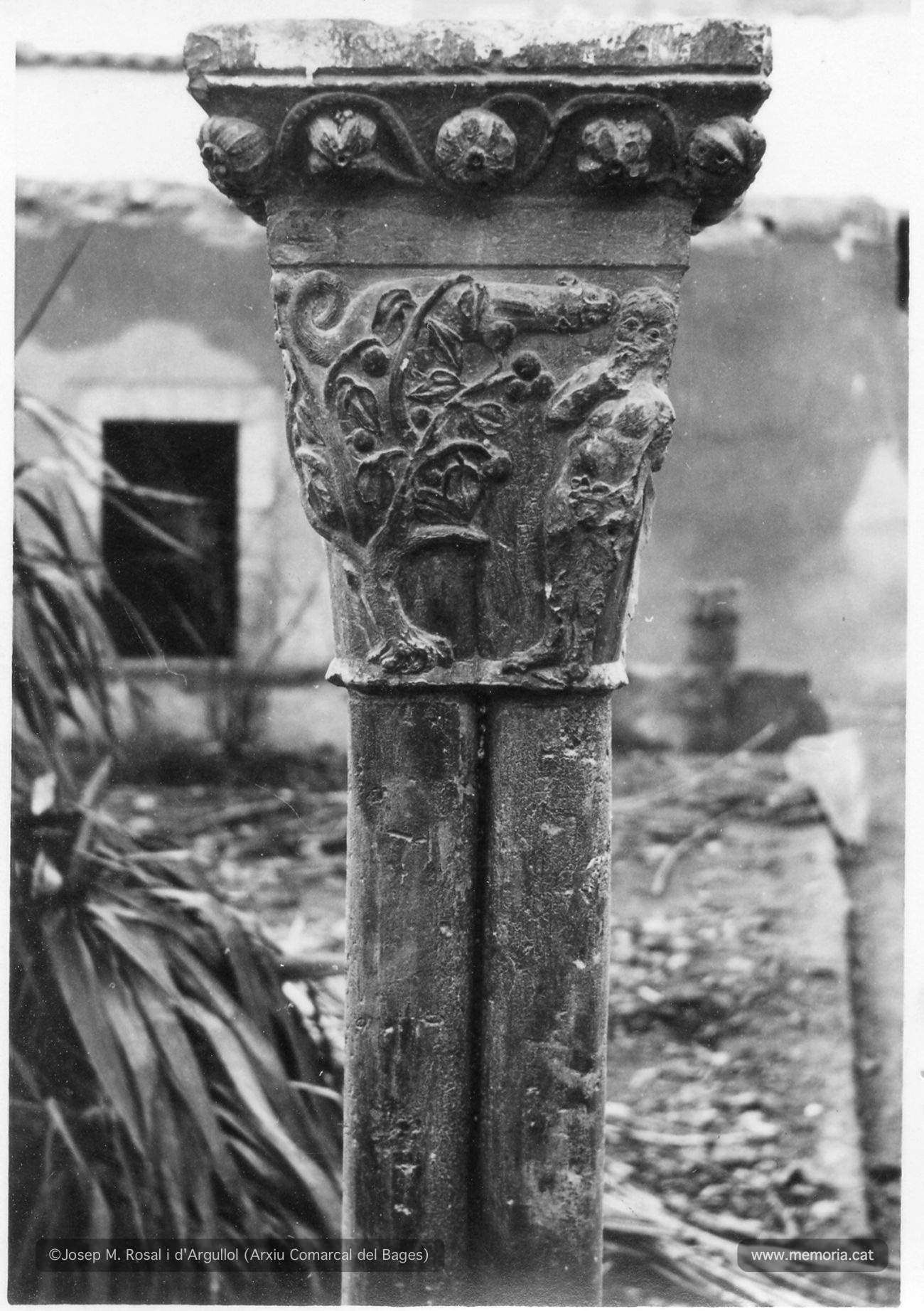 El convent de les Caputxines havia estat fundat l’any 1638 i en la construcció del seu claustre es van reaprofitar columnes i capitells gòtics del desaparegut monestir de Valldaura, que es trobava a l’inici del carrer del Cós. L’edifici del convent, molt auster, ja va patir importants destrosses durant la Setmana Tràgica (1909), però s’havia respectat el claustre. Amb l’inici de la guerra es va enderrocar tot el convent, claustre inclòs. Josep M. Rosal, segurament conscient de la importància artística dels capitells del claustre, va fer un ampli reportatge fotogràfic de les columnes i dels capitells gòtics mentre s’estava duent a terme l’enderroc.