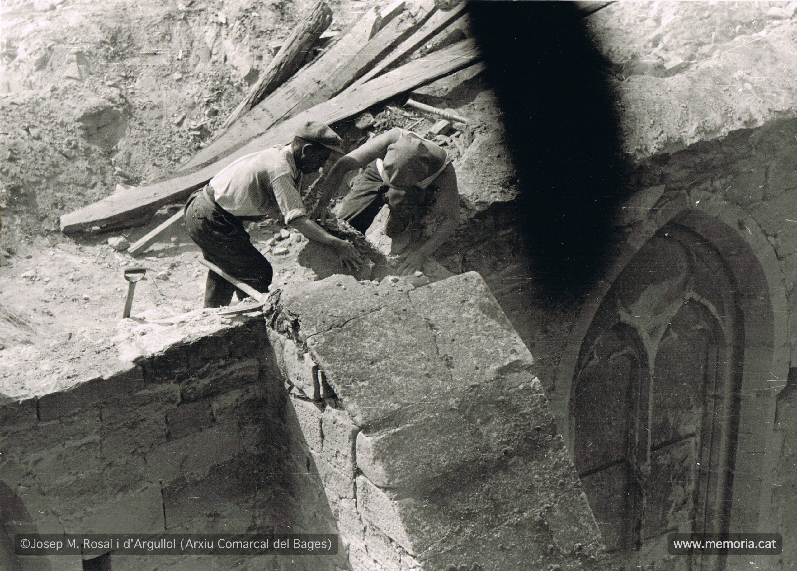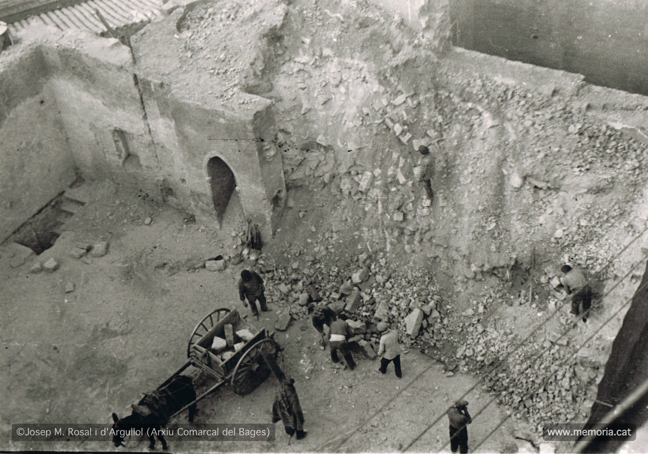Josep M. Rosal vivia al mateix carrer de Sant Miquel, davant per davant de l’església, raó per la qual podem contemplar unes excel·lents fotografies dels treballs de desmuntatge i enderroc del campanar i la volta de Sant Miquel, fetes des de la mateixa alçada de la teulada de l’església.