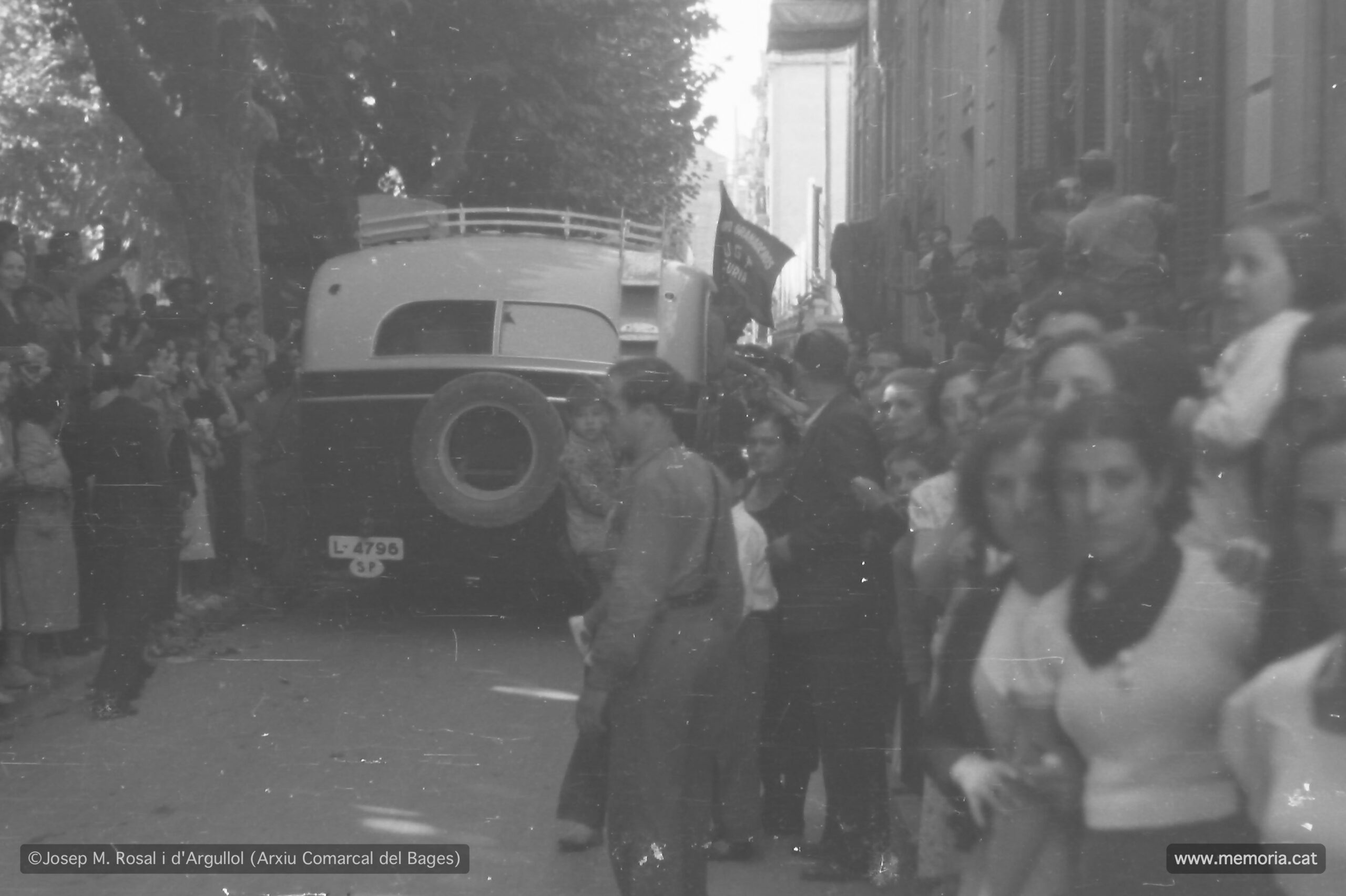 Imatges de la sortida de soldats de la Caserna del Carme cap al front de guerra i el seu pas pel Passeig de Pere III, on són aclamats per la gent. Les imatges probablement corresponen al dia 2 d’agost del 1936, quan va sortir en direcció al front el batalló de guarnició de la Caserna del Carme, sota les ordres del comandant Luis Menéndez Maseras.